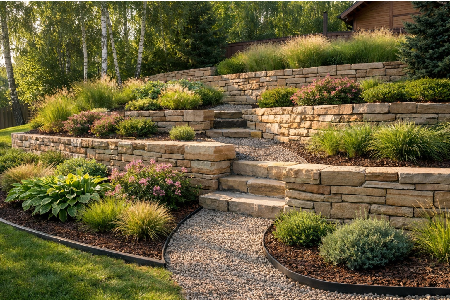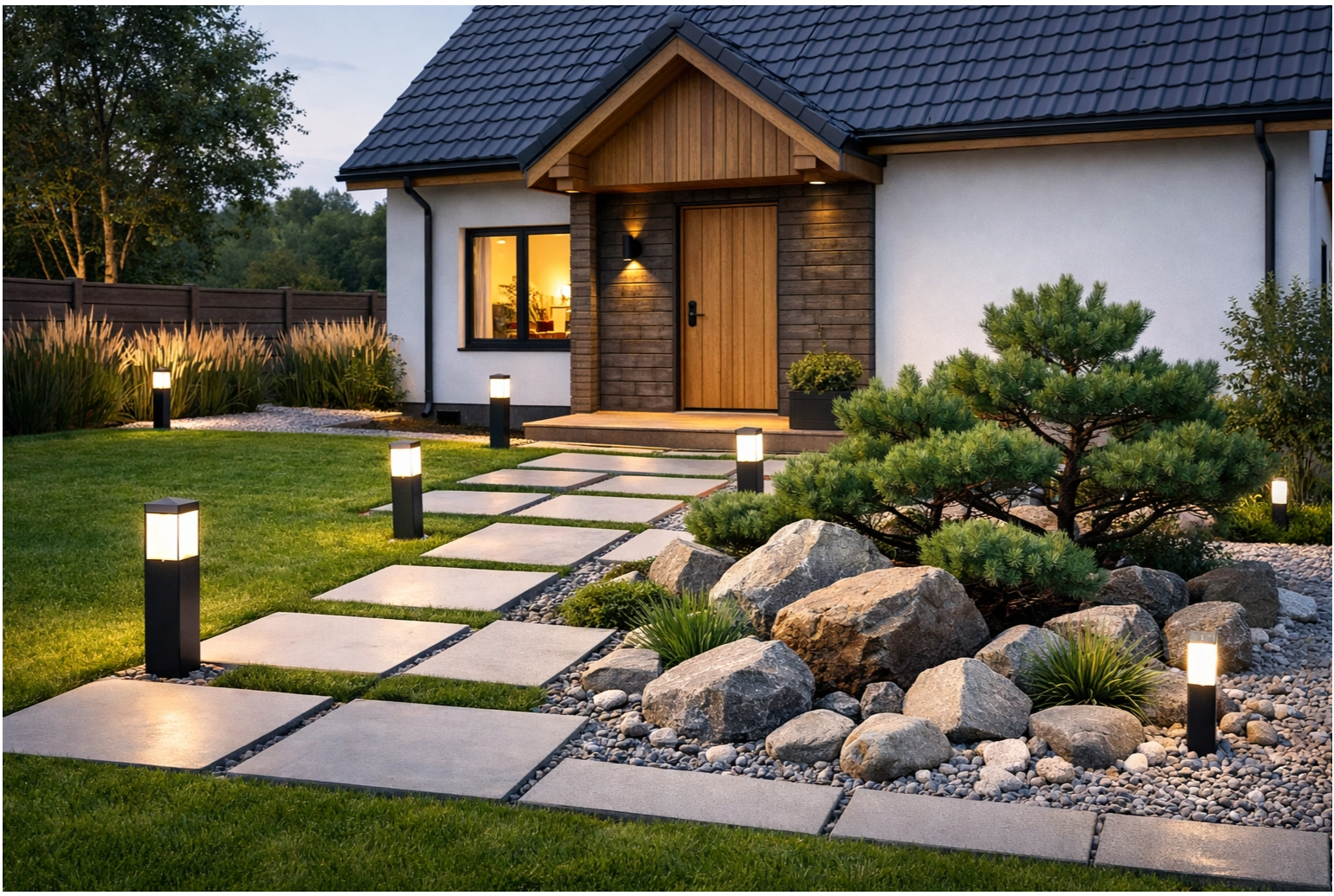 Учитывайте дренаж для таяния снега весной и укрытие растений зимой (до -30°C). Установите автоматический полив и точечное освещение для уюта.